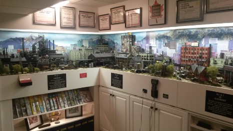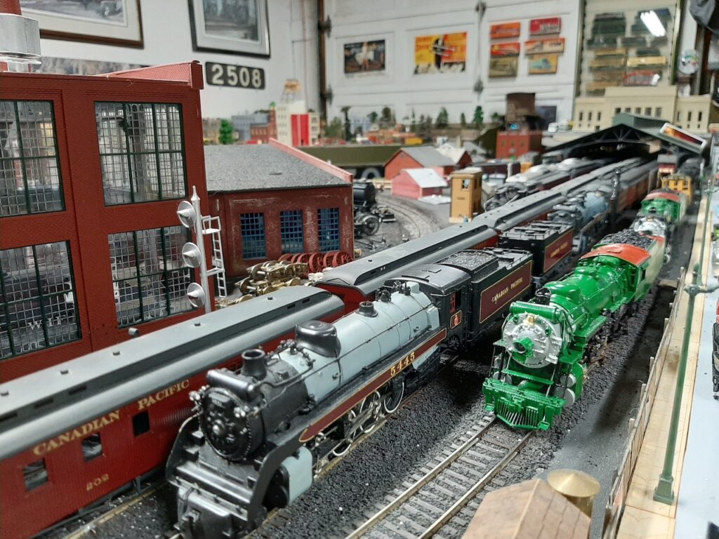 Rick Davis runs The What If  (Hamilton) HO railway with lots of locos, street cars, structures, and a display of rail memorabilia