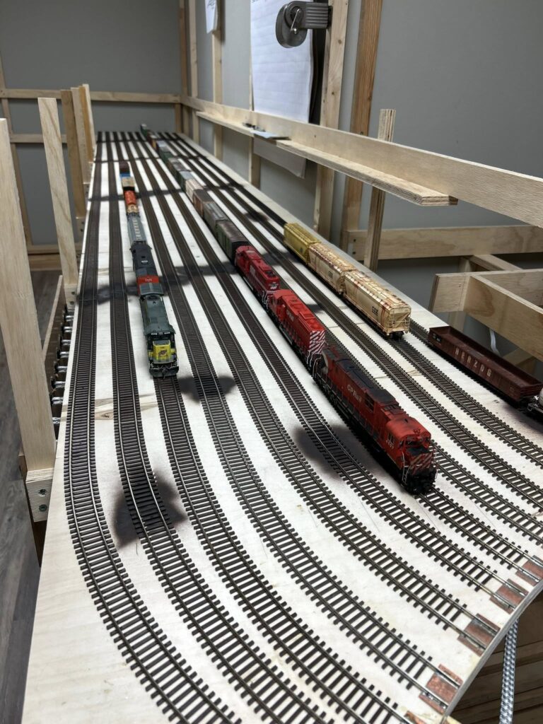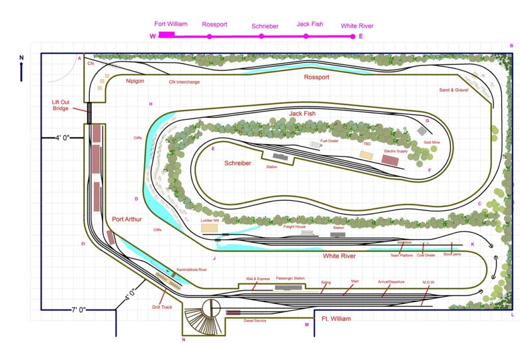 Paul Bellemore’s HO Green Bay & Western lines (Binbrook) is a new build of a double deck, 56’ x 25’ layout. It’s a huge home layout, built to very high standards for benchwork, track, and wiring. No scenery yet. Prototype modelling from Green Bay to Plover, with extensive staging for diverse traffic patterns with long trains based on the GB&W, FRV, WC and E&LS prototypes